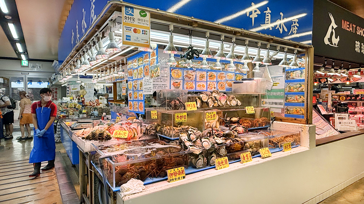 ใครชอบเดินตลาดปลาญี่ปุ่น แต่ไม่อยากไปไกล ที่ Kokusai Dori Street ก็มีตลาดปลานะครับ จะเปิดประมาณ 11 โมงครับ เดินเข้าซอยไปหน่อยก็เจอ Makishi Public Market ตลาดปลาใจกลางเมืองที่อยู่ใกล้ๆ ถนน Kokusai Dori ตลาดนี้เก่าแก่และเต็มไปด้วยร้านขายอาหารทะเลสด หอย ปลาสีสวย และผักพื้นเมือง รวมถึงเนื้อวากิว
