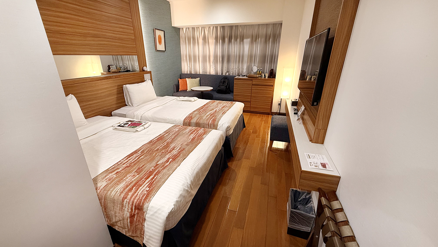ส่วนของห้องพักแนะนำให้นอน 2 เตียงแบบนี้นะครับ ห้องจะใหญ่กว่าเตียงเดียว